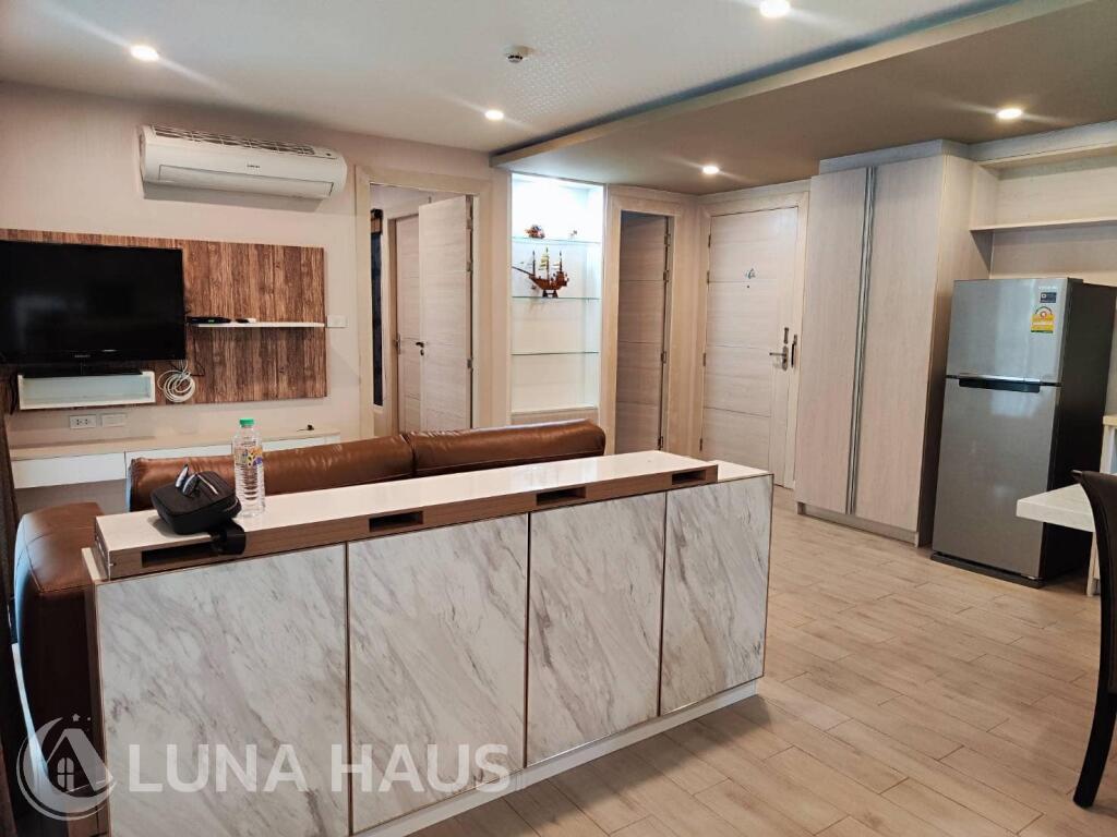 Enjoy exploring a tropical island with Seven Seas Condo Resort that comes with magnificent decorations as if staying in a world of imagination that will take you back to your childhood. The project is located near Jomtien Beach. It is surrounded by shopping malls, restaurants, and various important landmarks in the neighborhood, such as Bali Hai Pier, South Pattaya Beach, Night Bazaar, and Walking Street Pattaya, etc. The project consists of 7 buildings by simulating the names of different islands: Easter Island, Mystery Island, Madagascar, Bahamas, Bora Bora, Seychelles, and Hawaii. It is surrounded by tropical gardens and a giant lagoon swimming pool. The common area is adorned with pirate ships, moai statues, and seating areas to gain the sunshine. The rooms are fully furnished and come with a large balcony and a European kitchen, equipped with a Smart Home system that offers great convenience and 24-hour security systems.