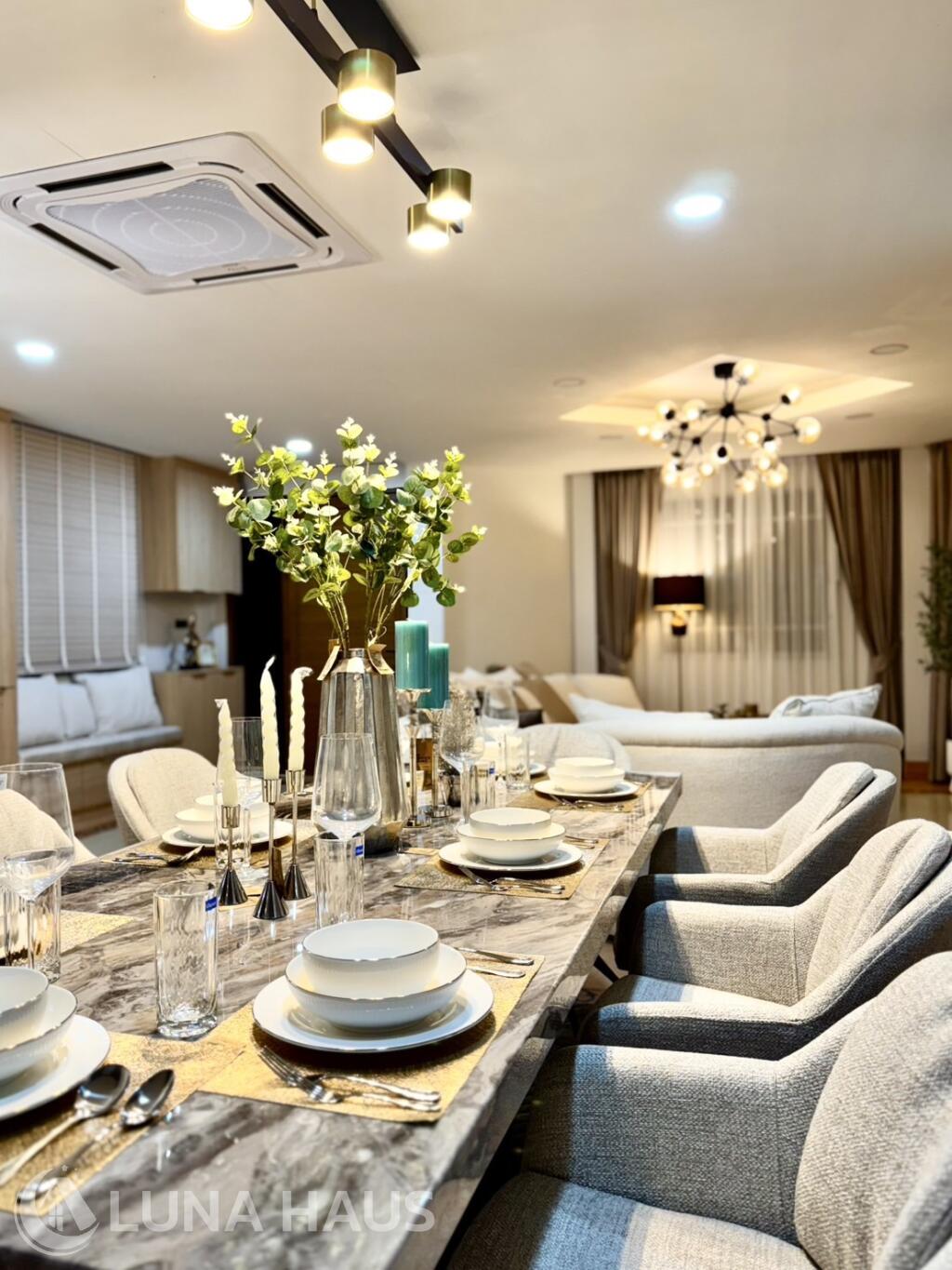 Dining area: Marble dining table set | ห้องทานอาหาร พร้อมโต๊ะหินอ่อน
