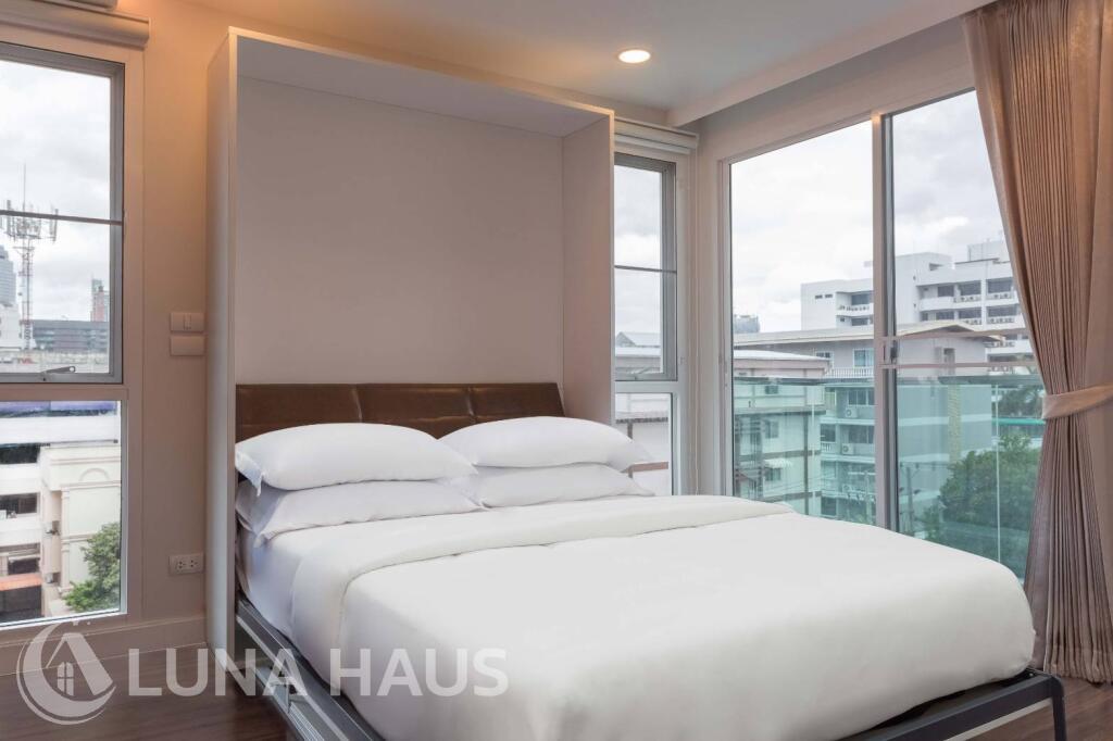 AASHIANA is a modern urban apartment located in the midst of Sukhumvit Soi 26, Bangkok – a prime location in the heart of the city. The apartment was developed by Urban Bliss Co., Ltd. in mid-2016. The residence features 9 floors including the rooftop and a total of 13 meticulously designed units (one, two, and three bedroom units) which are fully furnished and equipped with a home automation system, automated curtains, an Ultra HD smart TV, and more. Facilities include an infinity swimming pool, rooftop lounge, fitness gym, steam room, while services include transport service to the main roads, community malls, shopping centers, and scheduled room cleaning.