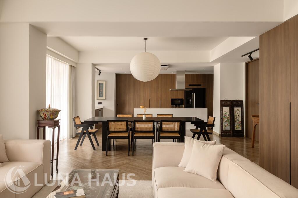 Generous living area connected to open kitchen, creating a bright and airy atmosphere