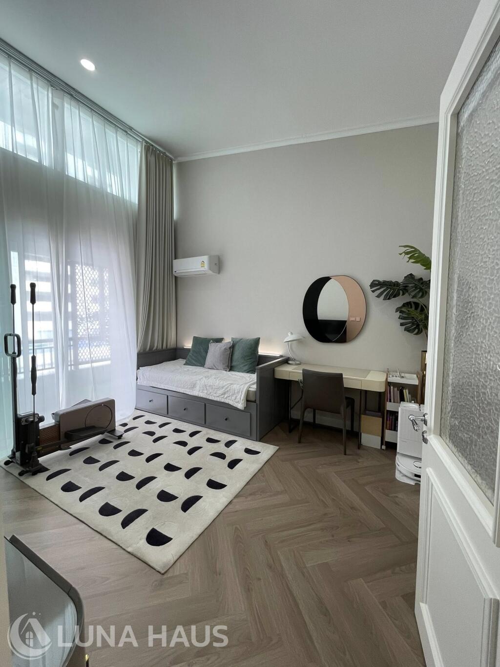 Third Room: Multipurpose room (study/storage) with extendable guest bed (single → queen)